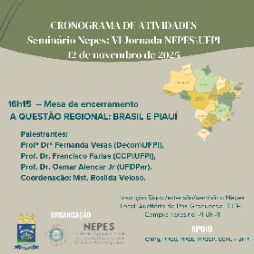No turno da tarde, das 14h às 16h, acontecem as sessões de apresentação de trabalhos, espaço destinado à exposição e ao debate de pesquisas vinculadas à temática do desenvolvimento regional. Encerrando a programação, às 16h15, será realizada a mesa de encerramento com o tema “A questão regional: Brasil e Piauí”, reunindo especialistas para discutir os desafios e perspectivas do desenvolvimento territorial sob uma ótica comparada entre o cenário nacional e o contexto piauiense.