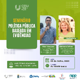 O Programa de Pós-Graduação em Ciência Política da Universidade Federal do Piauí (PPGCP/UFPI), em parceria com o Centro de Eficiência em Sustentabilidade Urbana (CESU/Teresina), convida a comunidade acadêmica e o público interessado para o seminário “Política Pública Baseada em Evidências”, a ser realizado no dia 09 de julho de 2025, às 16 horas, no Auditório Socorro Lira (Sala 340B – CCHL/UFPI).