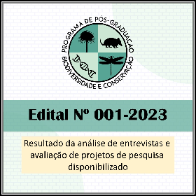 A Comissão de Seleção para ingresso no Programa de Pós-Graduação em Biodiversidade e Conservação (PPGBC/UFPI), período letivo 2023.1, no uso de suas atribuições legais e, considerando o Edital Nº 001/2023 - PPGBC, torna público o resultado da análise de entrevistas e avaliação de projetos de pesquisa, listadas com base no número do CPF de cada candidato(a), detalhado no arquivo em anexo a esta notícia.