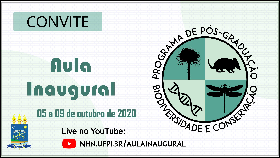 A Coordenação do Programa de Pós-Graduação em Biodiversidade e Conservação - PPGBC convida a participar do evento que marcará a aula inaugural do PPGBC. O evento ocorrerá de 05 a 09 de outubro de 2020, sendo transmitido ao vivo através do canal do Programa no YouTube. O canal poderá ser acessado através do endereço: nhn.ufpi.br/aulainaugural.