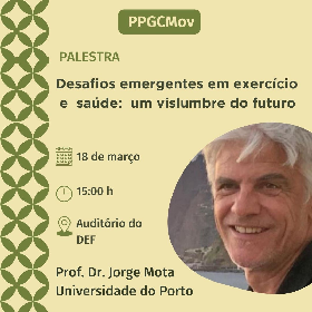 O Prof. Dr. Jorge Mota, da Universidade do Porto, palestrou na aula inaugural do PPGCMov. A palestra ocorreu de forma remota e abordou os desafios em exercício e saúde.