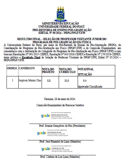 EDITAL Nº 05/2024 PRPG/PPGF/UFPI - Resultado Preliminar