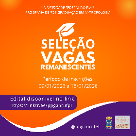 A Universidade Federal do Piauí (UFPI) através da Pró-Reitoria de Ensino de Pós-Graduação (PRPG), com a Diretoria do Centro de Ciências Humanas e Letras (CCHL) e da Coordenação do Programa de Pós-Graduação em Antropologia (PPGAnt), no uso de suas atribuições legais, tornam pública a abertura de inscrições para o processo seletivo da Décima Sétima Turma - Biênio 2026/2028, para o preenchimento de 08 (oito) vagas remanescente em nível de Mestrado com ingresso no primeiro semestre letivo de 2026.