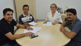 Pró-reitor da PRPG em exercício, Prof. Dr. Welter Cantanhêde, docente do PPG em Química, Prof. Dr. Edivan Vieira, docente do PPG em Enfermagem, Profa. Dra. Rosilan Magalhães, e doutorando do PPG em Química, Mikael Albuquerque