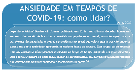 O Grupo de Estudos e Pesquisas em Saúde Mental e Trabalho (GEPSAMT/CNPq-UFPI), coordenado pela Profa. Dra. Márcia Astrês do Departamento de Enfermagem-UFPI e do Programa de Pós-Graduação em Enfermagem (PPGENF/CCS-UFPI), elaborou uma cartilha baseada em recomendações nacionais e internacionais para orientar as pessoas sobre como lidar com a ansiedade em tempos de pandemia pelo Covid-19.