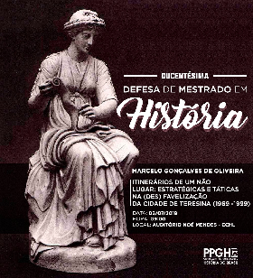 O PPGHB convida a Comunidade Acadêmica para a Ducentésima Defesa de Mestrado em História que acontecerá no dia 02/07/2018, às 09h, no Auditório Noé Mendes/CCHL/UFPI.