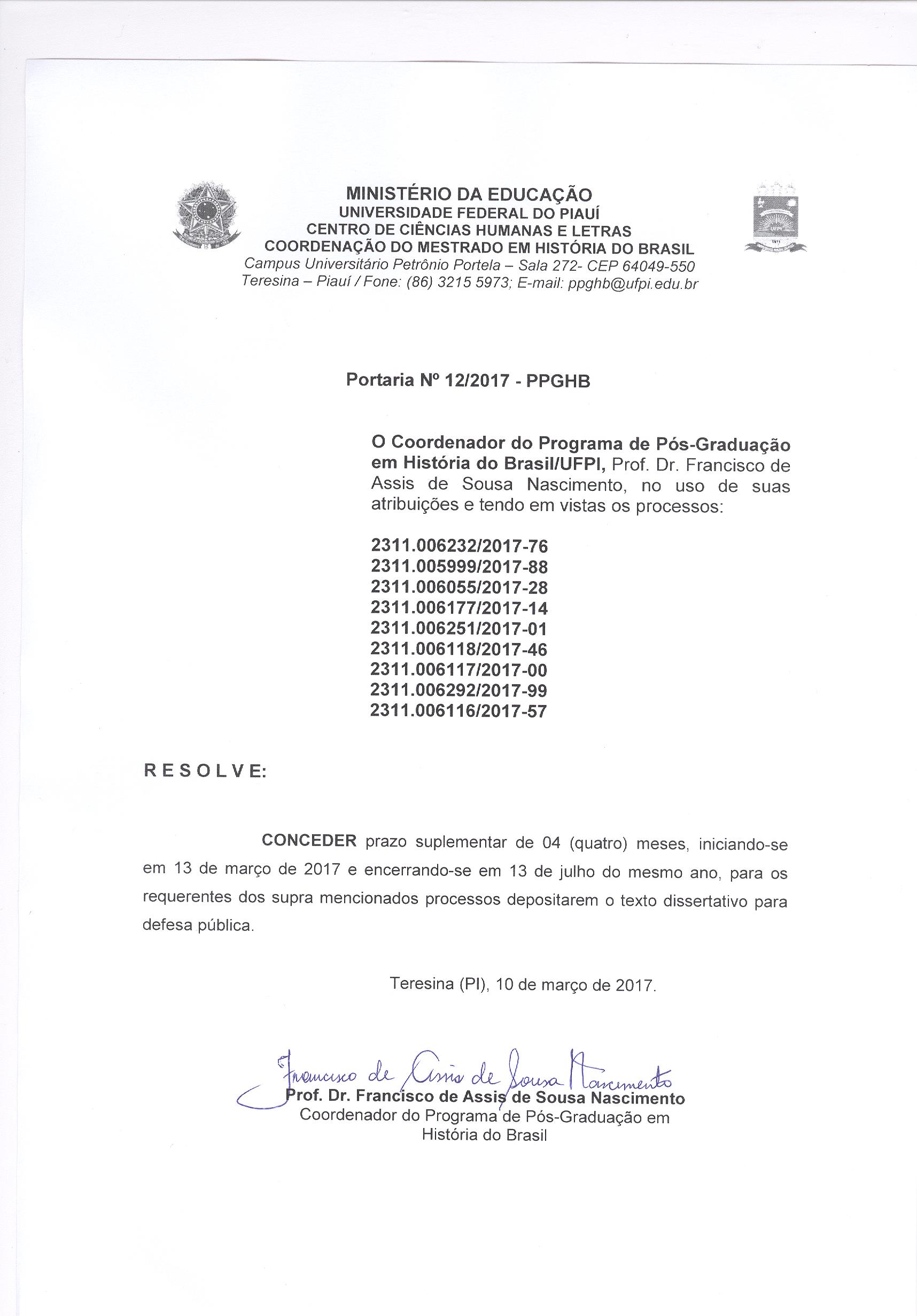 A Coordenação do PPGHB divulga o resultado da solicitação de prazo para o deposito do texto dissertativo para defesa pública.