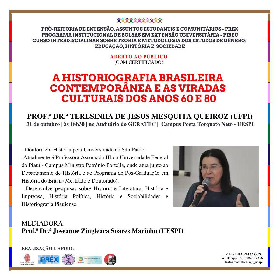 No dia 31 de outubro (quinta-feira), às 18h30, a Universidade Estadual do Piauí receberá, no Campus Poeta Torquato Neto, a Profª Drª Teresinha de Jesus Mesquita Queiroz, que, naquela oportunidade, ministrará a palestra intitulada "A historiografia brasileira contemporânea e as viradas culturais dos anos 60 e 80". A palestra é o evento de encerramento do Curso Interdisciplinar sobre Teoria e Metodologia dos Estudos de Gênero: Educação, História e Sociedade e terá como mediadora a Profª Drª Joseanne Zingleara Soares Marinho, docente da instituição promotora.