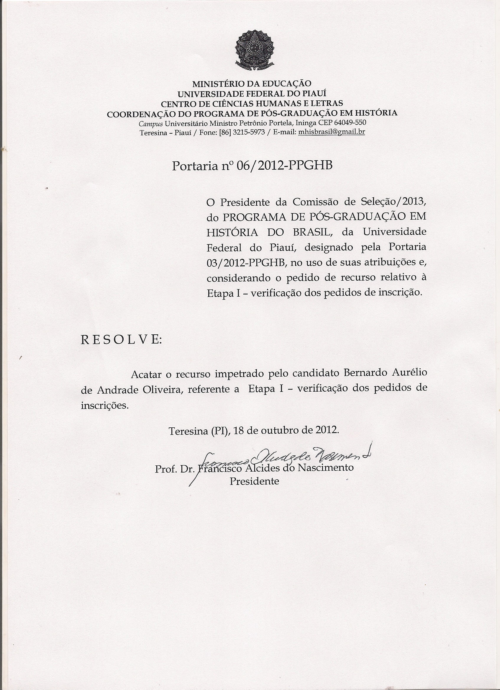 A Coodenação do PPGHB divulga o resultado dos recursos apresentados em relação à Etapa I da Seleção para o Mestrado com ingresso em 2013.