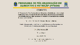 O Programa de Pós-Graduação em Alimentos e Nutrição - PPGAN/UFPI convida para a sessão de Defesa de Dissertação de Mestrado da discente.