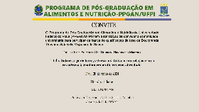 O Programa de Pós-Graduação em Alimentos e Nutrição - PPGAN/UFPI convida para a sessão da Qualificação de Tese da Doutoranda: