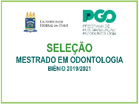 A Universidade Federal do Piauí (UFPI), por meio do Centro de Ciências da Saúde (CCS), da Pró-Reitoria de Ensino de Pós-Graduação (PRPG) e da Coordenadoria de Programas Stricto Sensu, torna pública a abertura de inscrições e a realização de seleção de candidatos ao Programa de Pós-Graduação em Odontologia, nível de mestrado, biênio 2019/2021.