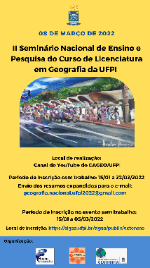 Anais do II Seminário Nacional de Ensino e Pesquisa do Curso de Licenciatura em Geografia da UFPI, 2022.