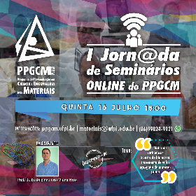 Esclarecemos que este evento será realizado uma vez por semana, sempre às quintas e no horário de 18 horas com duração de uma hora (apresentação mais perguntas) a ser ministrada por discentes e Professores do PPGCM interessados em temas da área de Materiais de sua livre escolha.