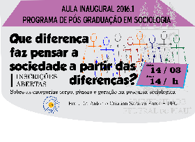 A Universidade Federal do Piauí (UFPI), por meio do Programa de Pós Graduação em Sociologia, convida a todos para a aula inaugural no dia 14 de março às 14h no auditório Noé Mendes no Centro de Ciências Humanas e Letras. O evento terá como tema "Que diferença faz pensar a sociedade a partir das diferenças?" e discutirá sobre as categorias corpo, gênero e geração na pesquisa sociológica.