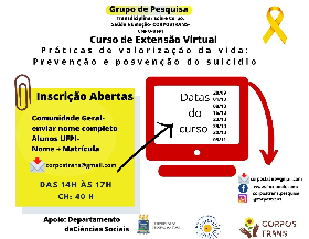 O Programa de Pós-graudação em Sociologia torna publico CURSO DE EXTENSÃO- Práticas de Valorização da Vida: Prevenção e Posvenção do Suicídio]