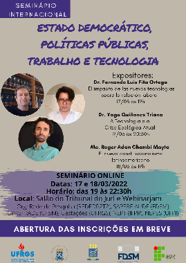 Primeiro seminário Internacional da Rede de Pesquisa Estado Democrático, Políticas Públicas, Trabalho e Tecnologia, da qual o NEPES (nucleo de pesquisa vinculado ao PPGS ) participa.