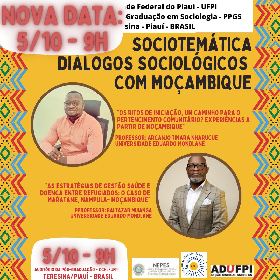 Informamos que a nova data do evento "Sociotemática: Diálogos Sociológicos com Moçambique" será quinta-feira, 5/10, às 9h.