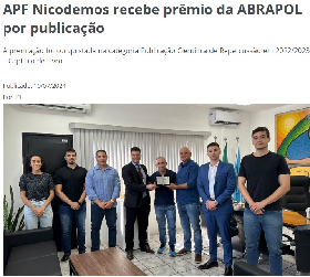 O egresso do PPGS, Nicodemos Coutinho de Meneses, que durante sua jornada no mestrado fora orientado pelo Prof. Dr. Gabriel Eidelwein Silveira, recebeu no ultimo dia 10 de julho de 2024 premiação concedida pela Associação Brasileira dos Papiloscopistas Policiais Federais - ABRAPOL, na categoria Publicação Científica de Repercussão em 2022/2023 - Capítulo  de Livro. Nicodemos é coautor do texto "Uma metodologia para a produção de conhecimento em segurança pública por meio de recursos de visualização de dados e informações".