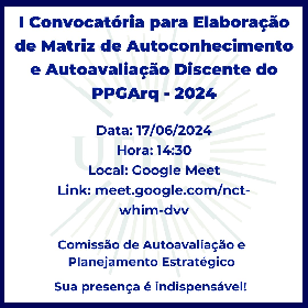 I CONVOCATÓRIA PARA ELABORAÇÃO DE MATRIZ DE AUTOCONHECIMENTO E AUTOAVALIAÇÃO DISCENTE PPGARQ 2024
