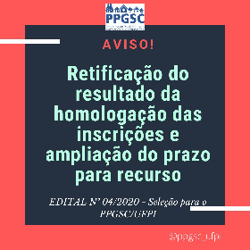 A Comissão de Seleção do Programa de Pós-Graduação em Saúde e Comunidade comunica a retificação do resultado da homologação das inscrições do processo seletivo edital 04/2020- biênio 2021/2023