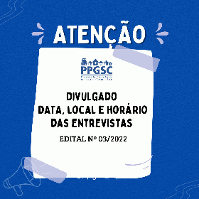 O Programa de Pós-Graduação em Saúde e Comunidade divulga o data e local da Etapa IV (entrevista), do processo seletivo referente ao edital N.º 03/2022 - PPGSC/UFPI.