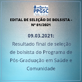 O PPGSC divulga o resultado final da seleção de bolsista, conforme normas estabelecidas no Edital N. 01/2021.