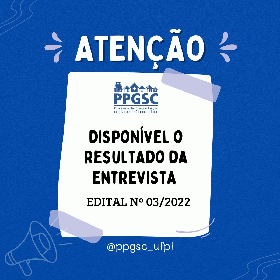 O Programa de Pós-Graduação em Saúde e Comunidade divulga o resultado da Etapa IV (entrevista), do processo seletivo referente ao edital N.º 03/2022 - PPGSC/UFPI.